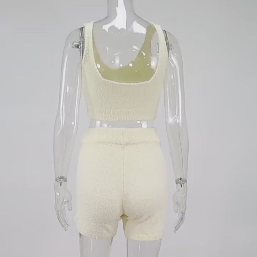Soft comfy pajama, designed for women, this sleepwear featuring a long sleeve crop tank top and adjustable drawstring shorts. Perfect for lounging, sleeping or casual wear. Available in multiple sizes and colors.